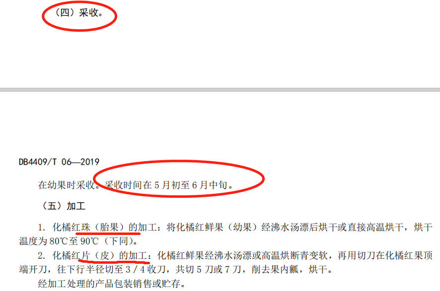 《地理标志产品 化橘红》中关于化橘红的采收时间和加工标准